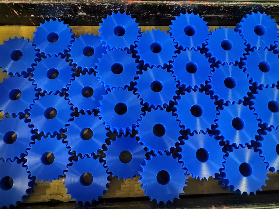 Pièces tournées/fraisées/découpées au fil et sablées.